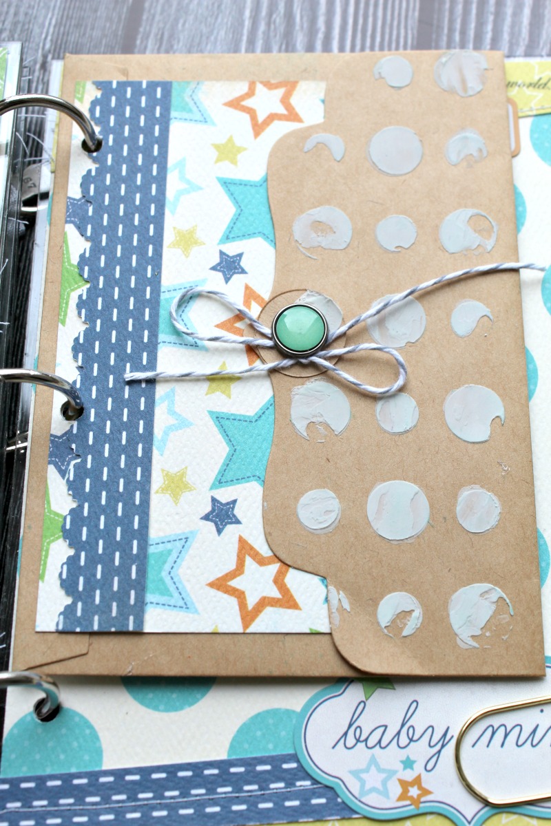 I love adding extra pages to my mini books! Here, I used a kraft envelope that I altered with modeling paste and my 6 Inch Polka Dots Mascil.