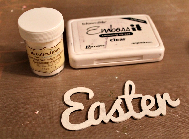 I also embellished my chipboard word with first adding a few coats of white acrylic paint.