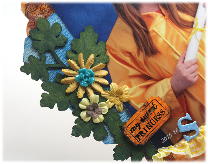I colored the chipboard maple leave with stazon ink, then stamped a floral stamp on it for some interest.