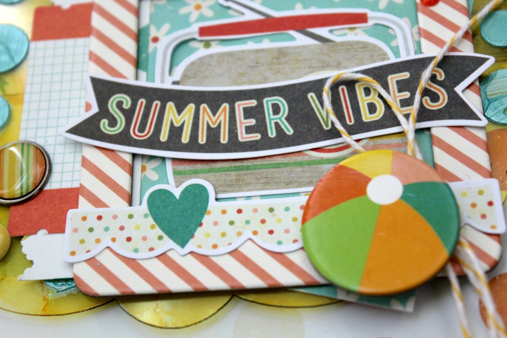 Additional products used: patterned paper, die cuts, chipboard, brads, enamel dots: Simple Stories; stamp: Teresa Collins for Fiskars; border punch: Fiskars; bakers twine: Whisker Graphics; alcohol and pigment ink: Ranger Ink; texture paste: Heidi Swapp; adhesive: Beacon Crafts; 3M