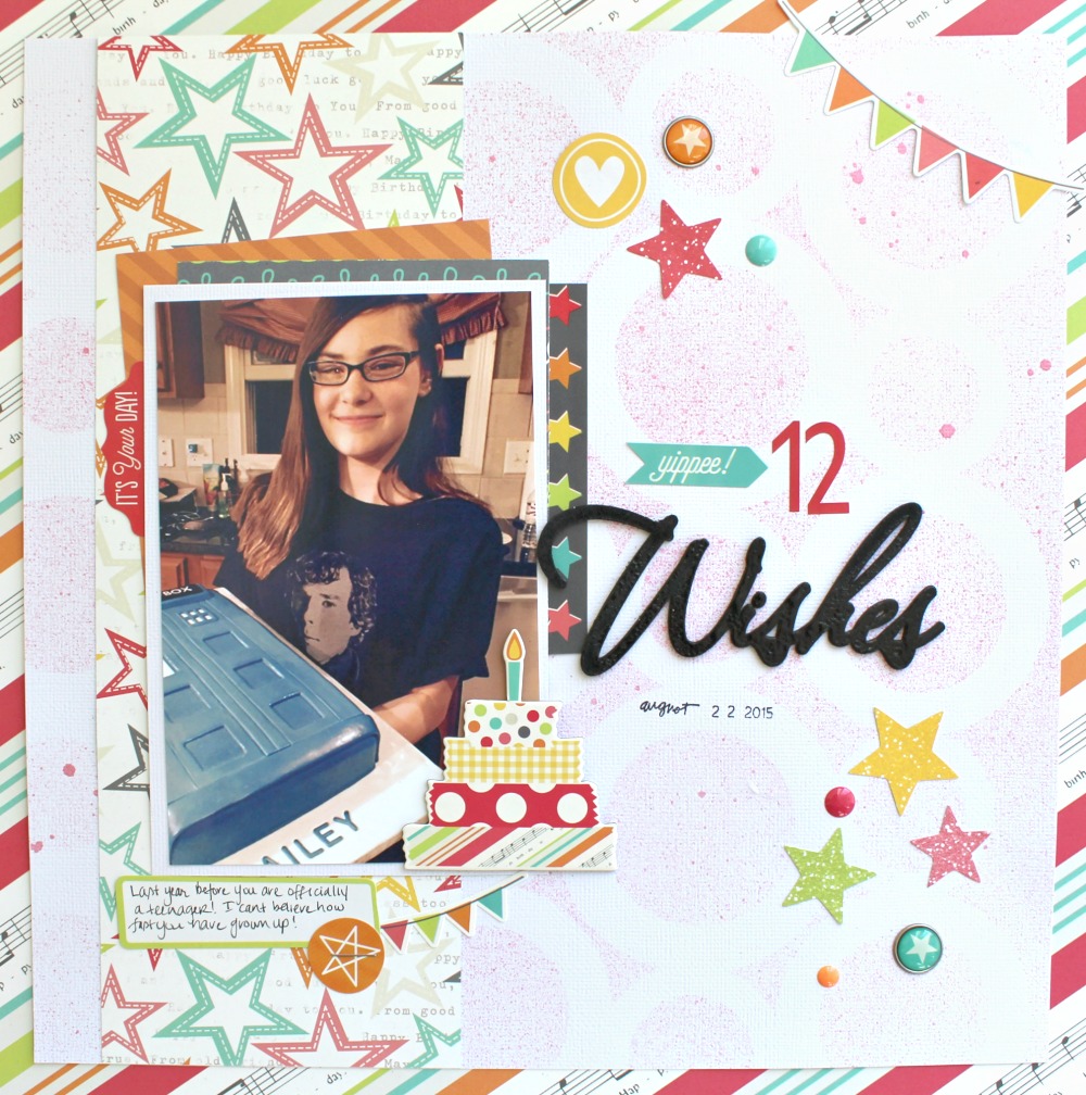 Hello! It's Jennifer and I'm sharing a layout I created using the Wishes Chipboard Script Word Title! And I'm going to show you a couple techniques I used on my page!