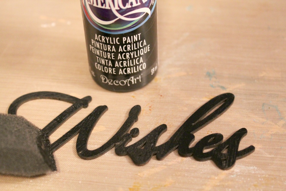 Now, I'm going to show you how I altered my chipboard title! I first applied an even coat of black acrylic paint to the top of the word title.