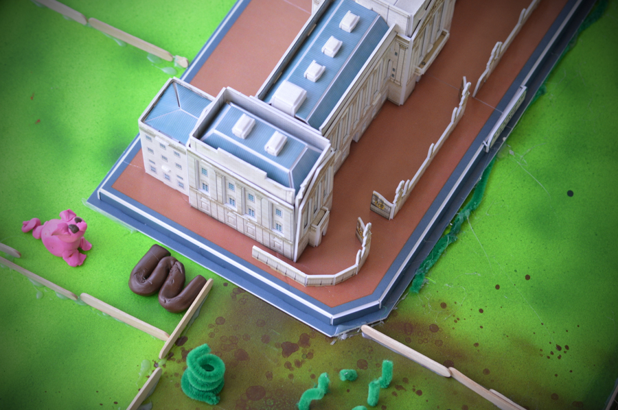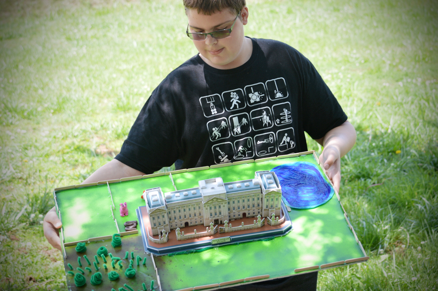 Ok enough bragging right? My son was asked to do a 3D school project on a book he read So he decided on The Enemy by Charlie Higson which had Buckingham Palace in it with a fence and pond and garden.