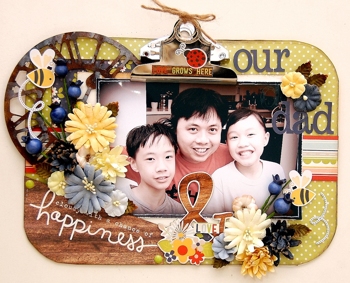 Hello everyone! With Father's Day is just round the corner, I would like to take this opportunity to share a simple gift with I've created. To create this gift, I've used Clear Scraps acrylic clipboard and roman clock chipboard embellishment.