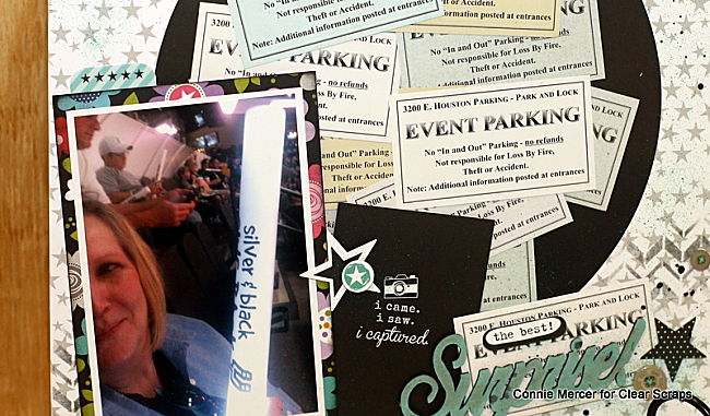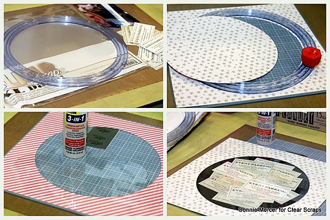 Hi, Connie here with a stack of parking tickets that I thought would really cool used as a background for a scrapbook page. The only thing is, they will move and that is how I came up with a Shaker page. Clear Scraps to the rescue!! The Dazed Round is what I need~