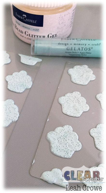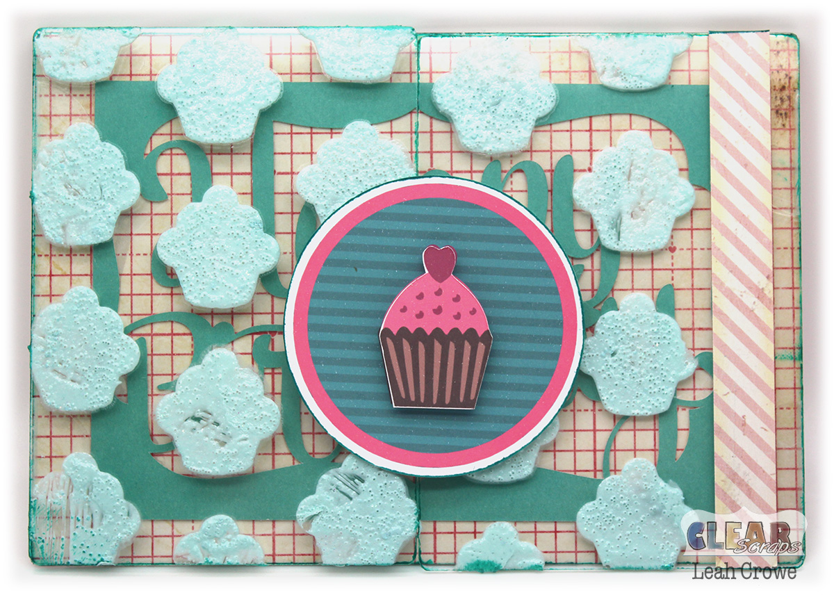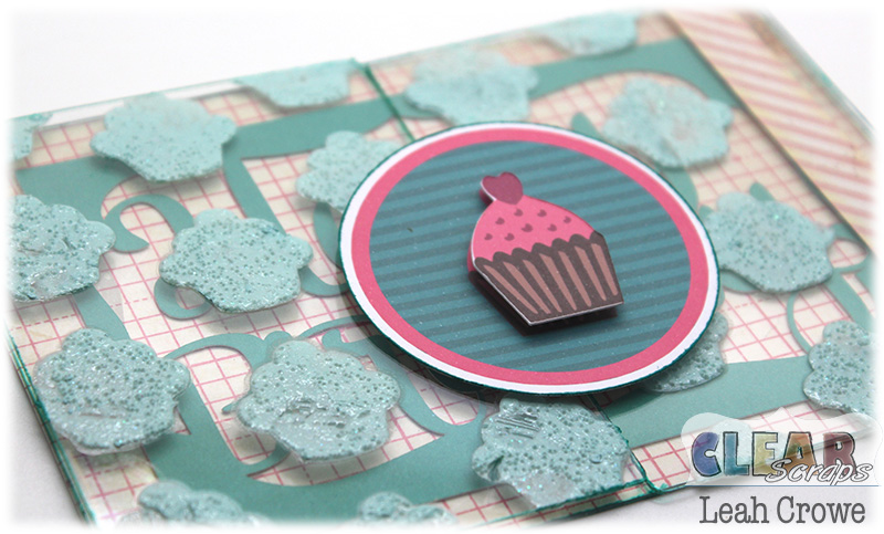 I used the Clear Scraps 6" Cupcake mascil, some lovely Faber Castell Glitter Bead Gel & Gelatos to create the design on the front panels of the card.