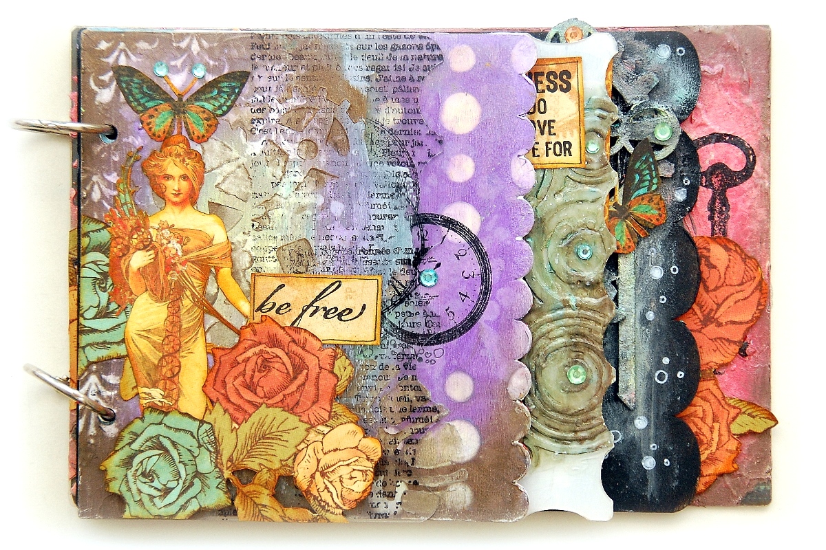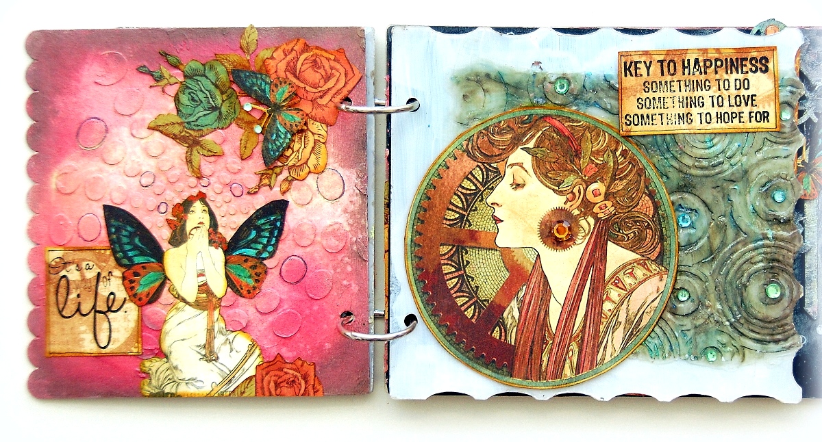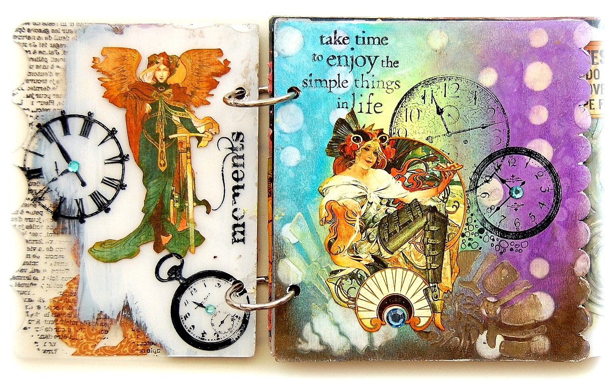 I've used some simple mixed media techniques with gelatos to create the background on each page. I have explained further on each page on my blog. Feel free to check it out!