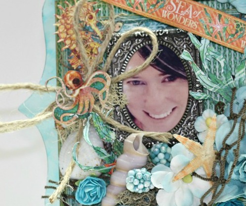 To color the acrylic I used StazOn in teal blue to the background using a piece of sponge. It matched the theme so perfect.