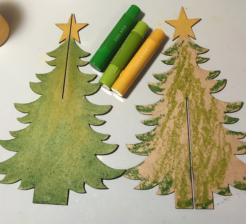 For the small trees I simply used Gelatos and rubbed the colors on both sides, just blending with my fingers.