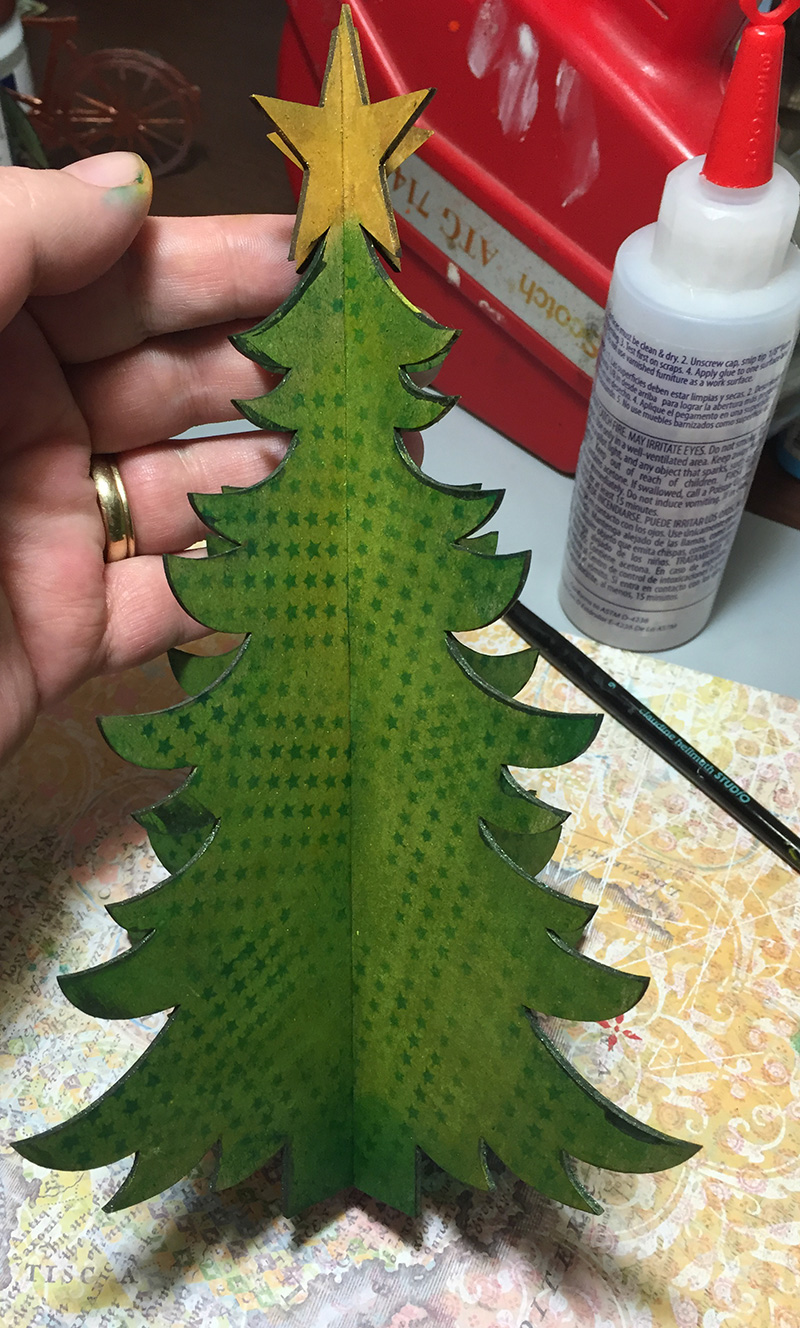 For the large tree, I adhered shiny pattern paper to the chipboard and cut it away using my craft knife. That took some time, but I absolutely loved the end result. What do you think?