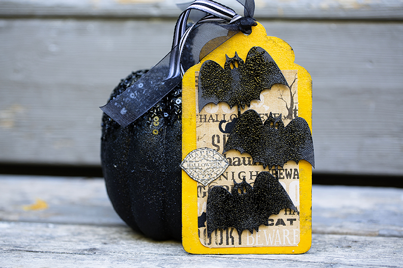 I spray painted the chipboard tag and bats. To add texture to the bat I use a black embossing powder. Thank you so much for stopping by and yes in few days…….happy fall!!!!