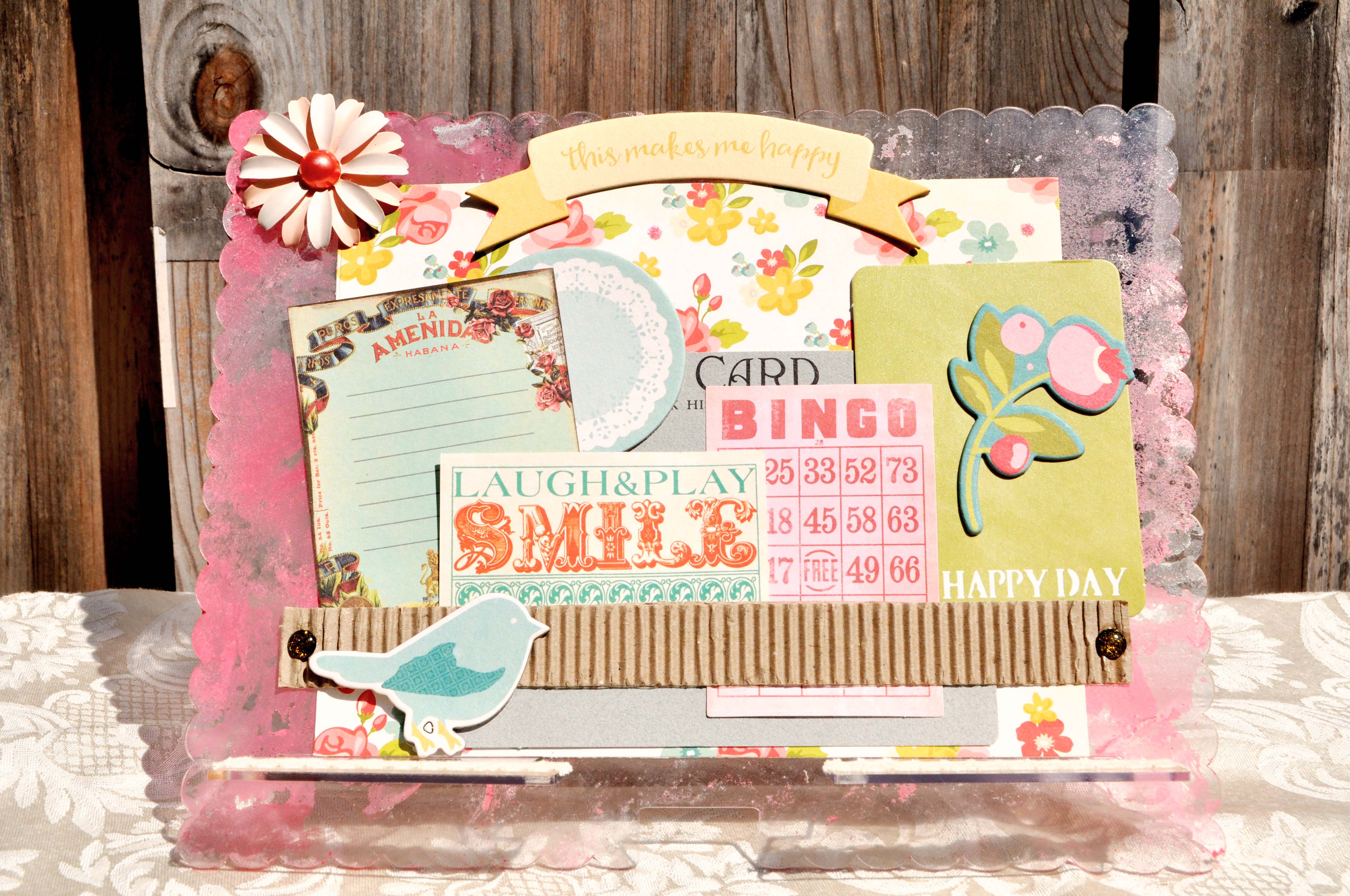 Hi everyone! Welcome to the Clear Scraps blog. Nancy here today to share with you a fun project, a tablet stand, I made using the Clear Scraps Scallop Tablet Stand and some odds and ends on my table.