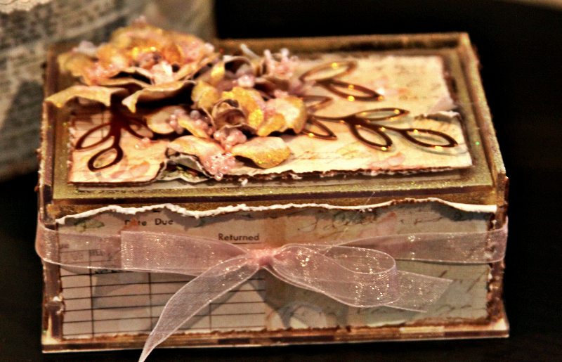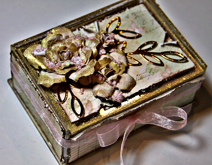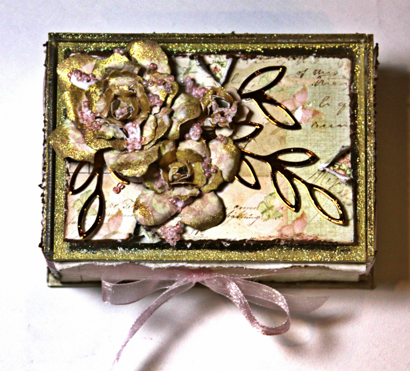 Before I assembled the box I embossed all the edges in a gold glittery embossing powder