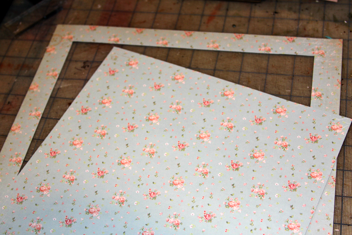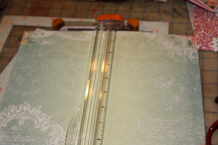 Trim 1/2 in of 2 sides of your second piece of patterned paper.