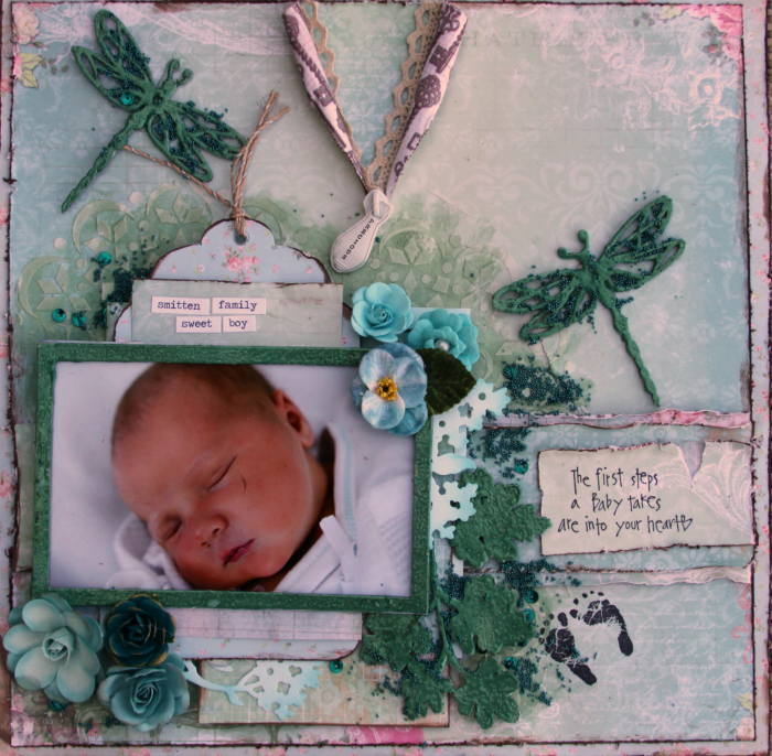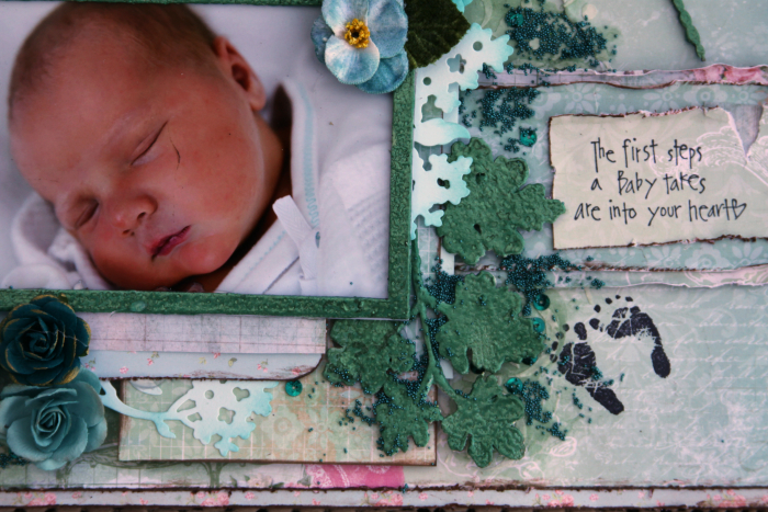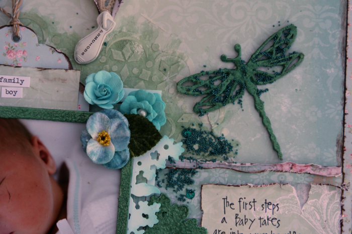 Time to add your Chipboard and Embellishments of choice (I almost always use flowers).