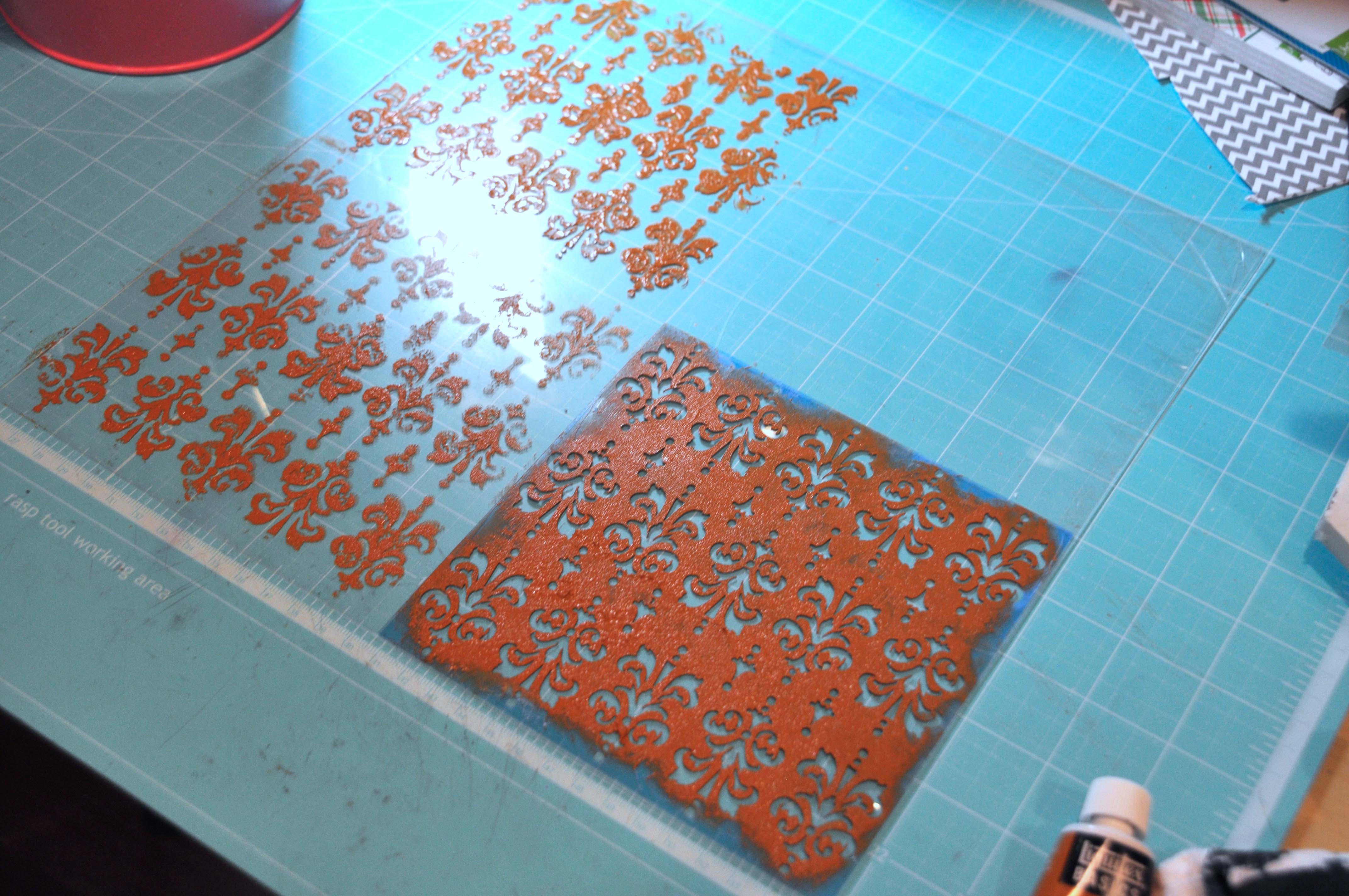 Hi everyone! Nancy here today to share with you a fun fall craft featuring Clear Craft Sheets, the leaves embellishments and the 6inch Damask Mascil. I love keeping a stash of Clear Craft Sheets around as they are so much fun to create with.