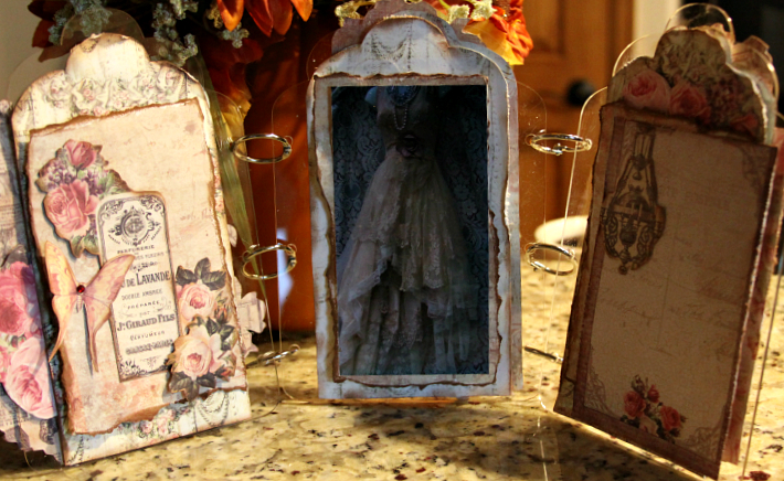 The first photo is the front cover. I let the clear acrylic peak out around the edges. Lots of layering and fussy cutting complete this
