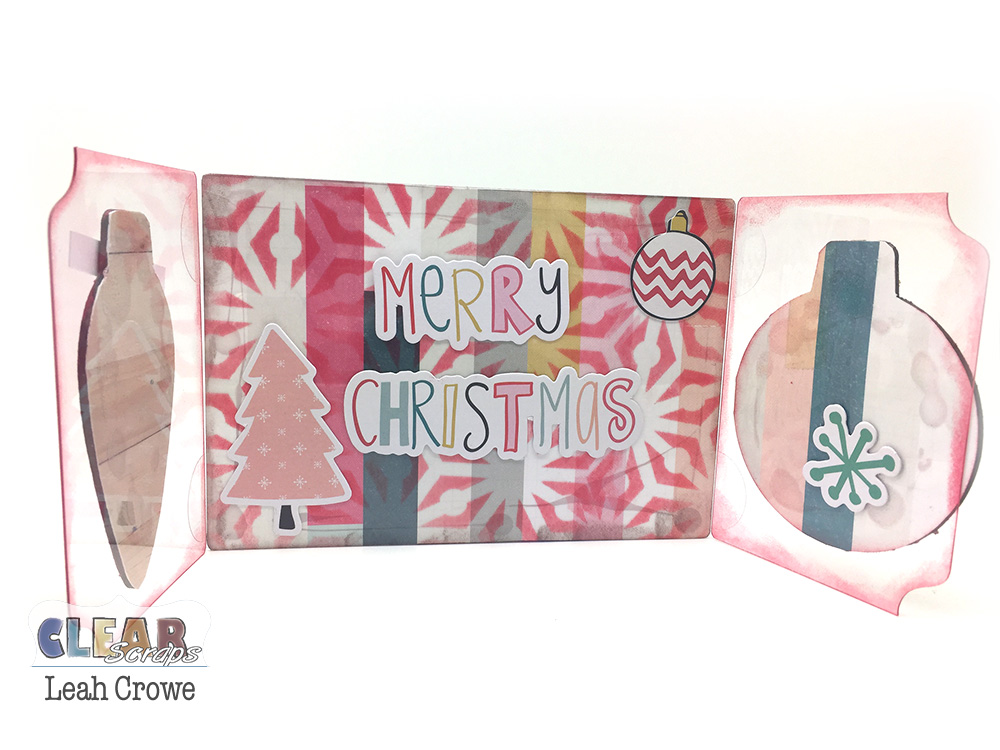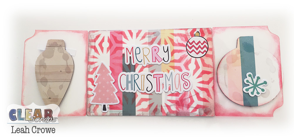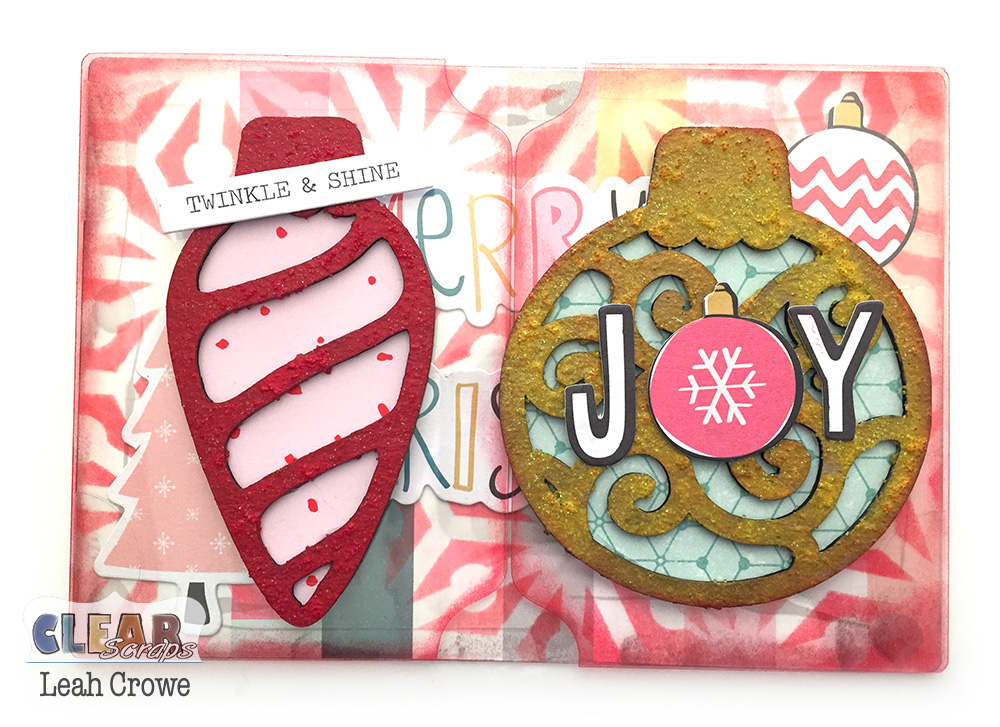 Happy December Clear Scraps fam! This month I wanted to start us off with a quick Send it Clear card using Clear Scraps acrylic Belgrave card and the Christmas Swirl bulb chipboard embellishments. Say that three times fast! 🙂