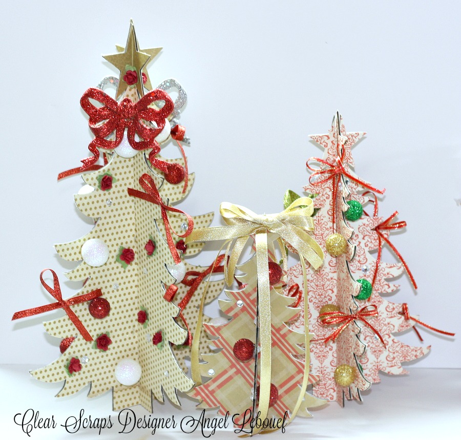 Angel back with you showing you how I decorated these cute decor 3D Chipboard X-Mas Trees. These would make great centerpieces or even look great next to your christmas villages..
