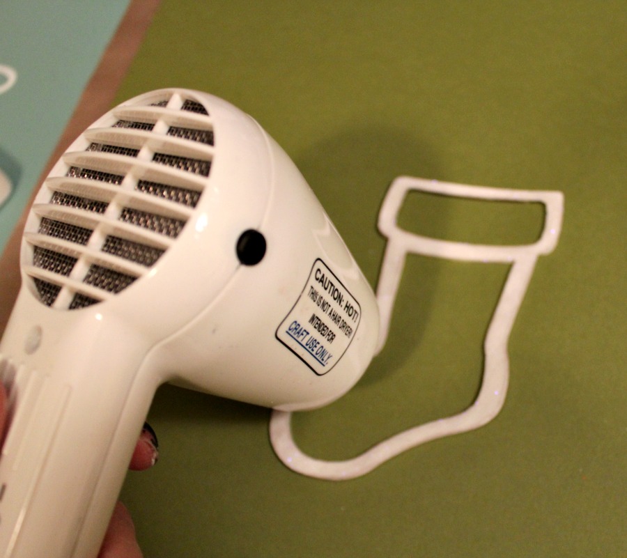 Once allowing the paint to dry, I was ready to start my first shaker! An easy way to add some bling to your chipboard is using embossing ink and powder! I simply applied my ink pad directly to the surface of the shaker then sprinkled with glitter embossing powder.
