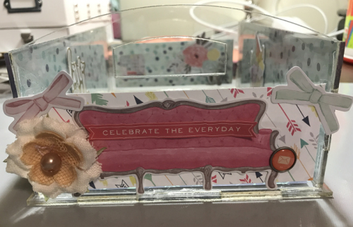 Products used: Clear Scraps Acrylic Tray Box; Echo Park Pattern Paper; Prima flowers; Beacons 3-in-1 Glue; Simple Stories Bradz; Pink Paislee Ephemera;