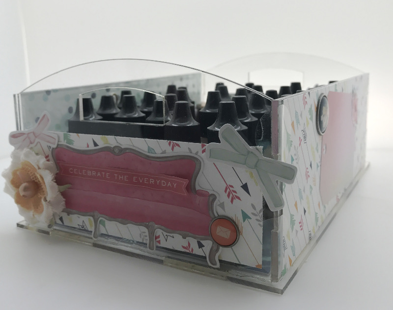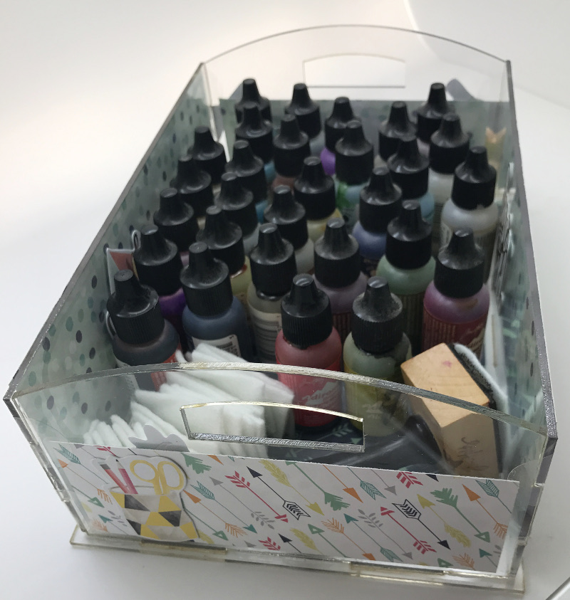 Now I just added a few small embellishments and I now am the proud owner of a new Alcohol Ink storage tray. I use these so often, I have decided to leave them out on my desk.