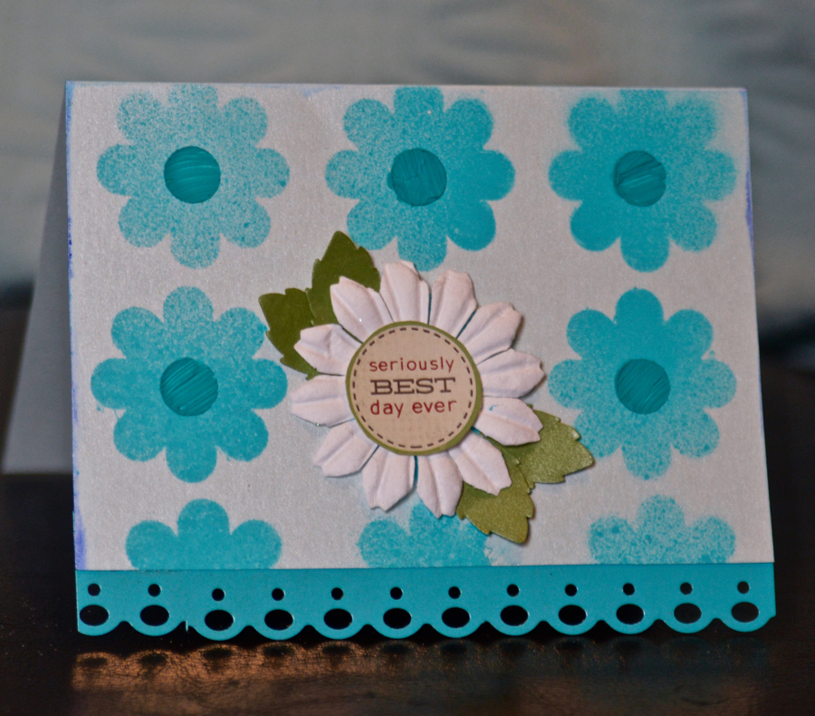 For the second card I used the Flowers Layering Stencil, I used spray paint and modeling paste for this one.
