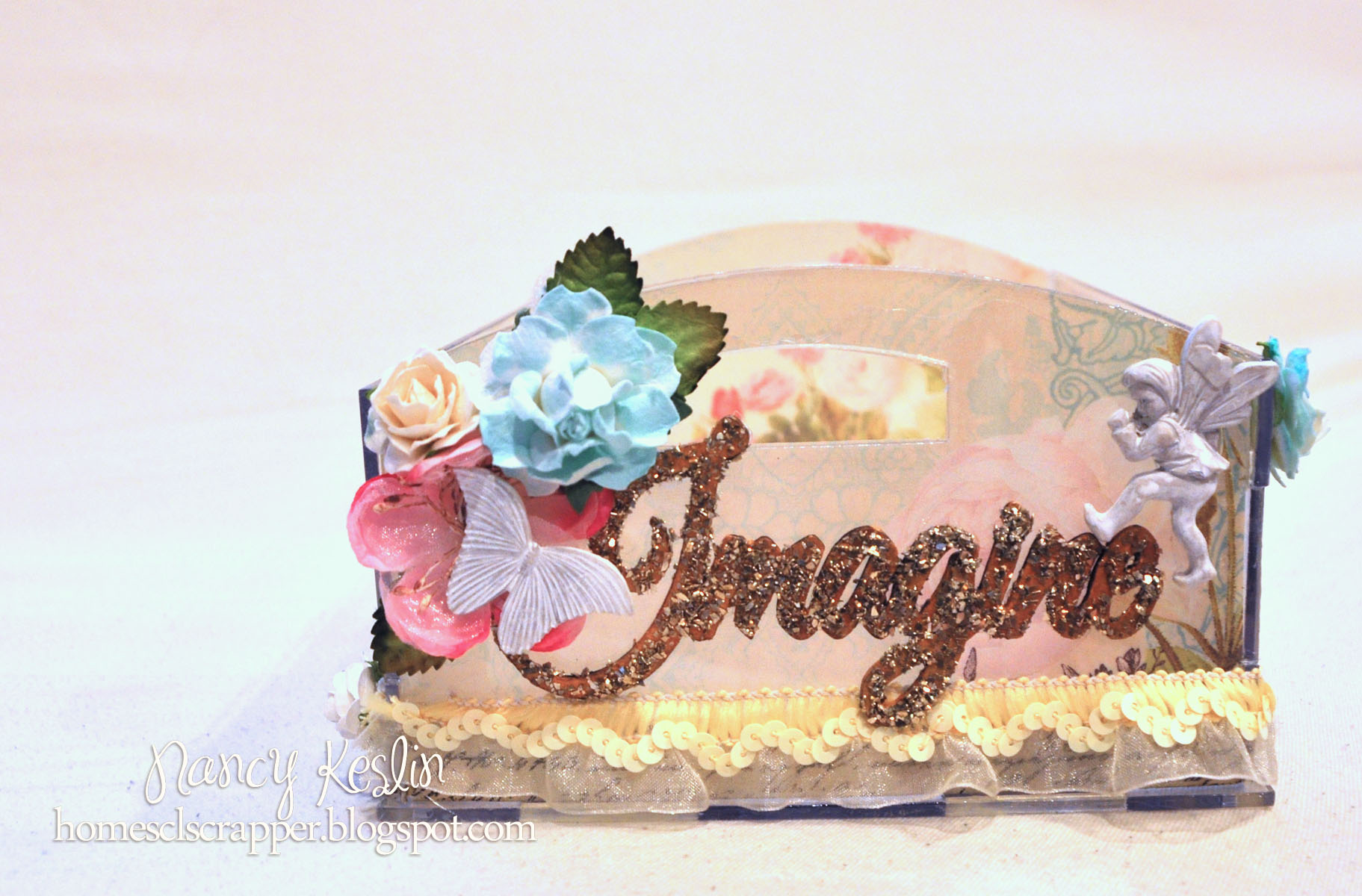 i used some older websters pages papers, lots of gorgeous prima blooms and embellishments and of course a bit of trim and glitter to make it pretty. thinking now, it may be nice to set this next to my bed to hold some jewelry while i sleep….hmmmm