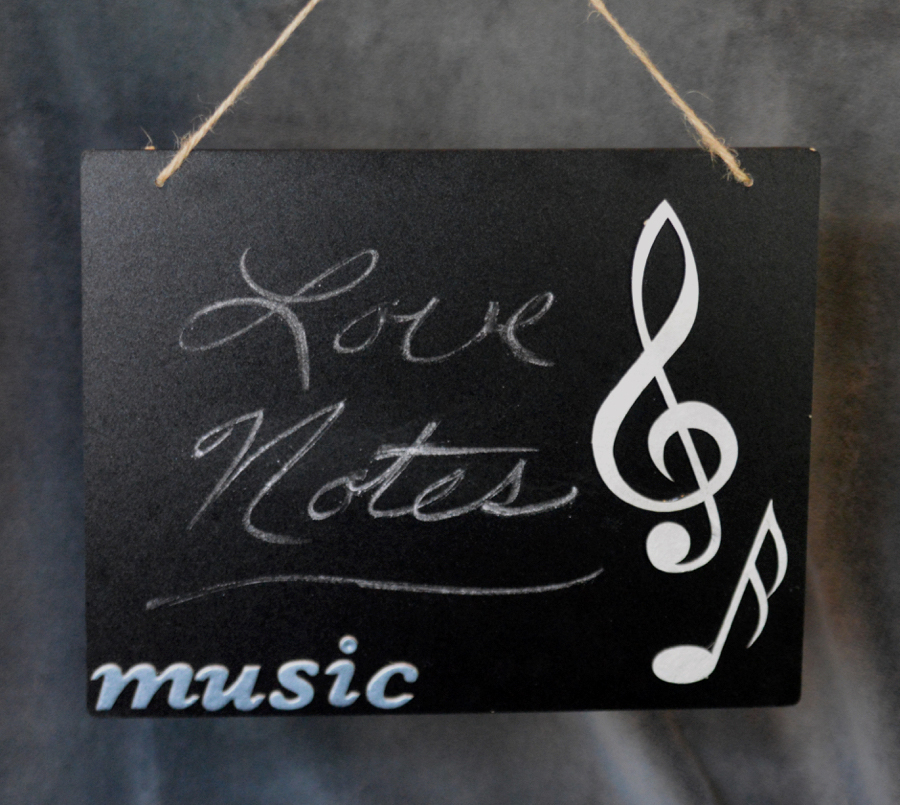 For my first Music Note project I used a chalkboard I had and made a musical chalkboard for my son's music teacher to hang in her class! They count every day how many students they have so now she can keep track on the board that goes with her career!