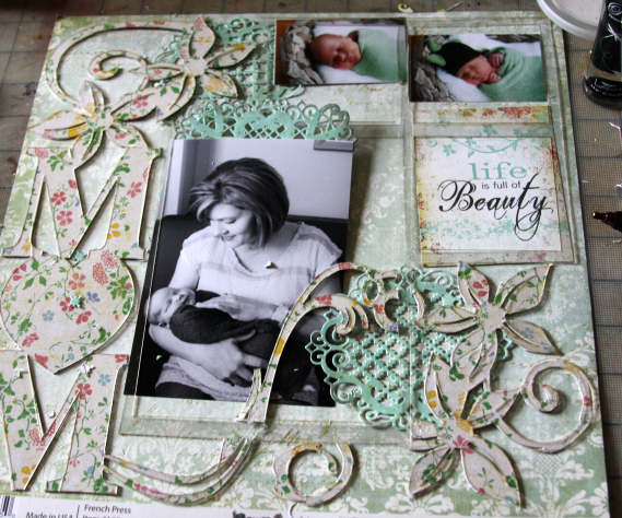 I used the Clear Scraps for this New Mom 12×12 Acrylic Layout project, there are several of these beautiful layouts in the store