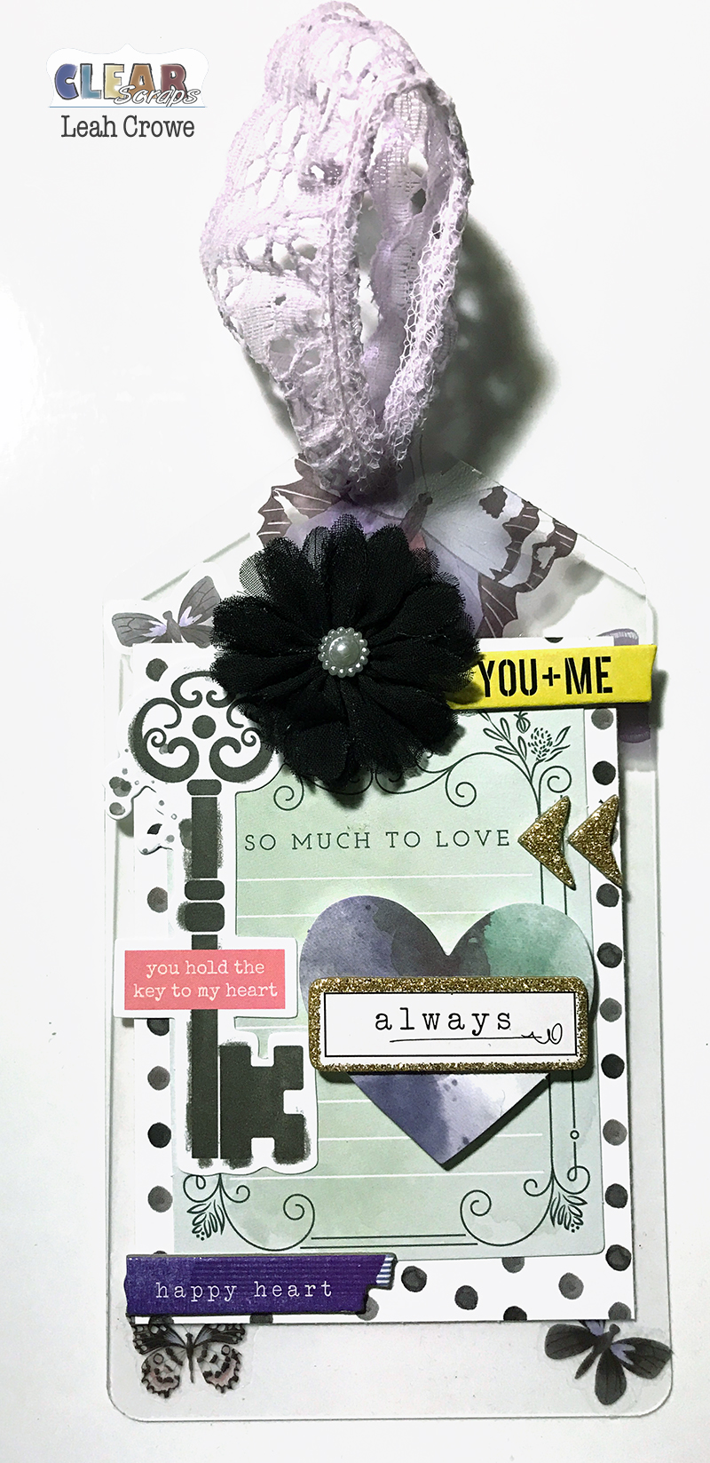 Products Used: Clear Scraps Acrylic Tag Album; Pattern Paper: American Crafts; Ephemera: Pink Paislee; Adhesive: Recollections Foam Pop Dots, Beacons 3-in-1.