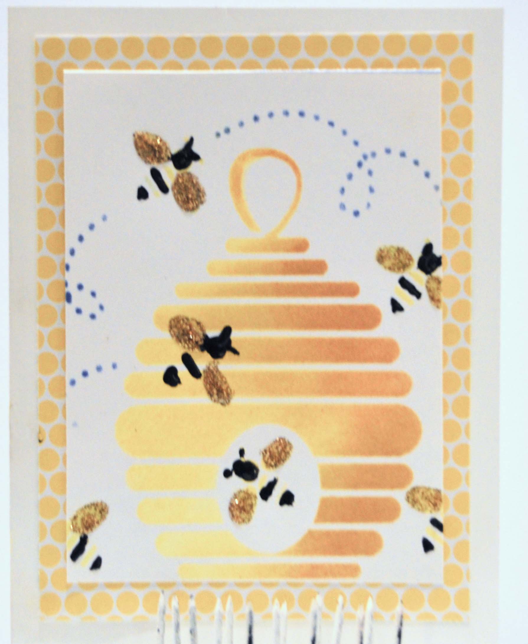 Once the beehive was inked, I came back and inked in my bees and the fly dots. So quick and easy.