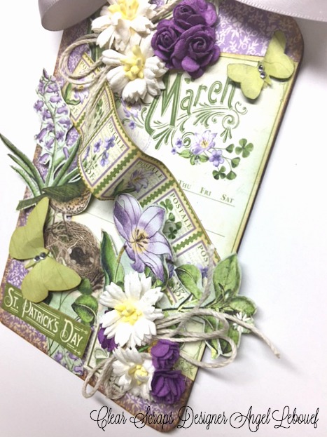 With that said I want to show you my March Tag! When I think of March I think fresh green! Clover, St Paddy's Day, leprechauns , and Spring.