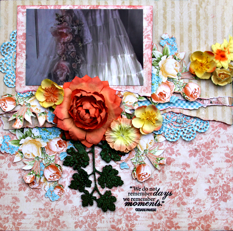 For this layout I used a floral paper and cut around the floral patterns to use as embellishments.