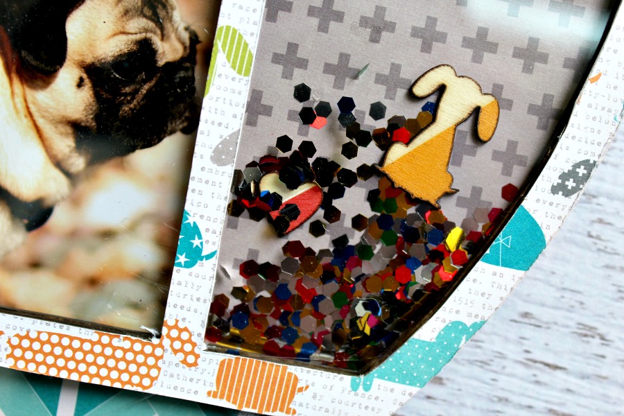 Before adding my acrylic piece, I used some "chunky" glitter I picked up at Michael's and wood veneer pieces to create a shaker spot.