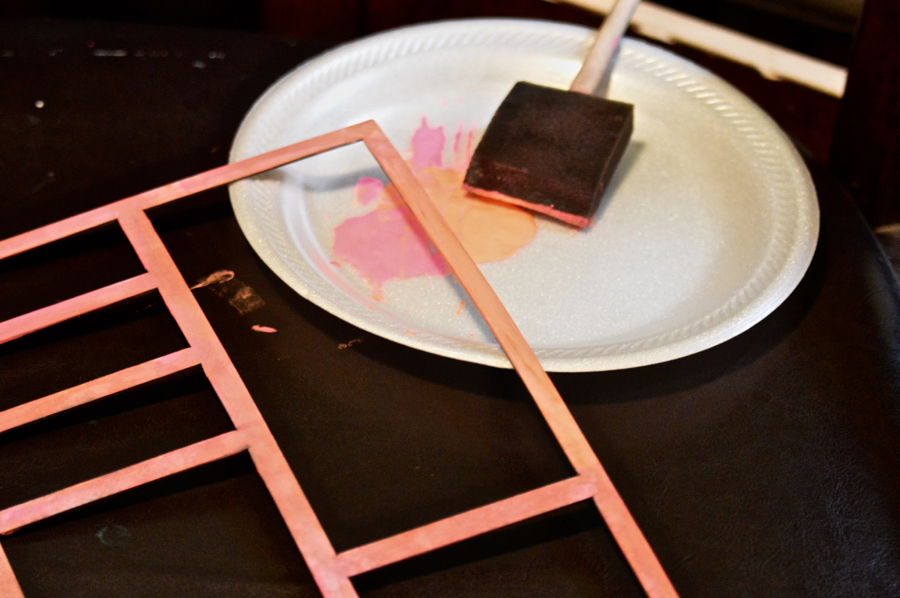 Then I took the cover chipboard piece and painted it in hot pink and orange colors.