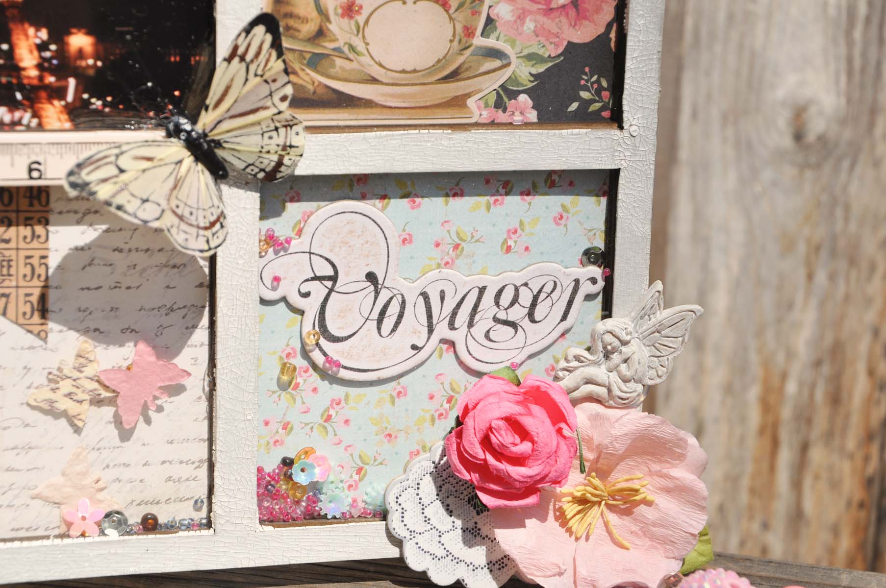and of course I embellished the frame with lots of beautiful florals, butterflies, chipboard and resins.