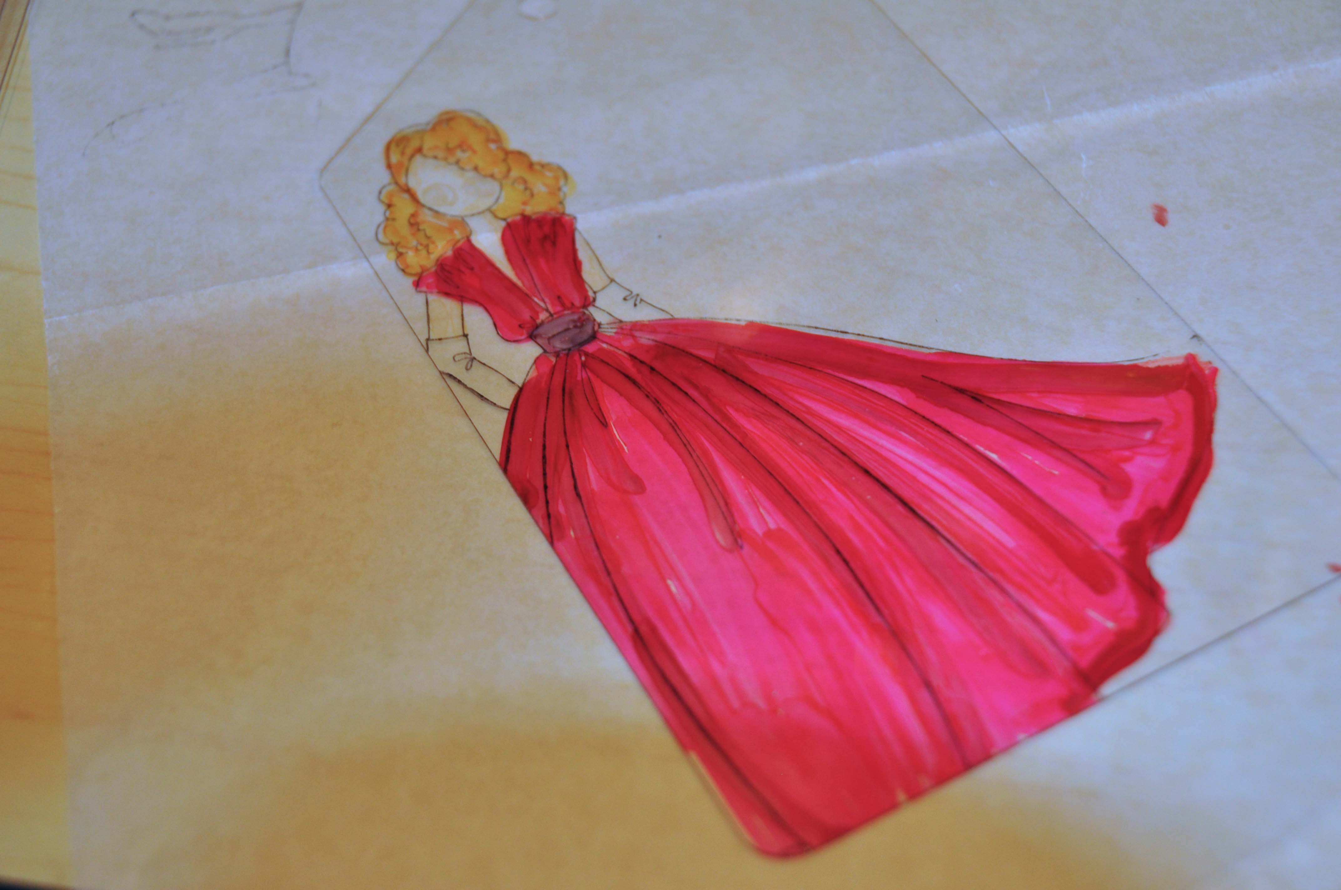 then i colored my image, again on the back side of the tag. i used alcohol markers for this to ensure it would stay.