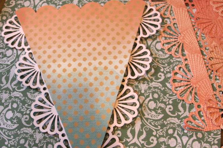 To get started on this banner I simply traces the chipboard onto patterned paper and then cut it out. You will need 2 pieces per banner piece.