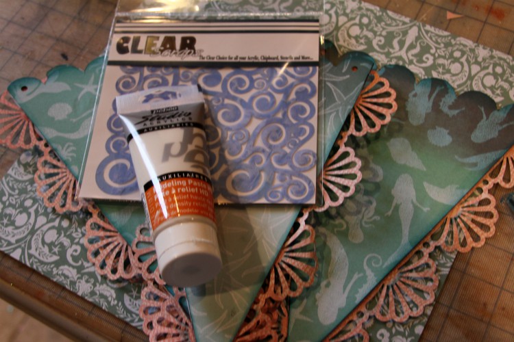 Next step is to add some modeling paste using the 6'' Swirl Stencil