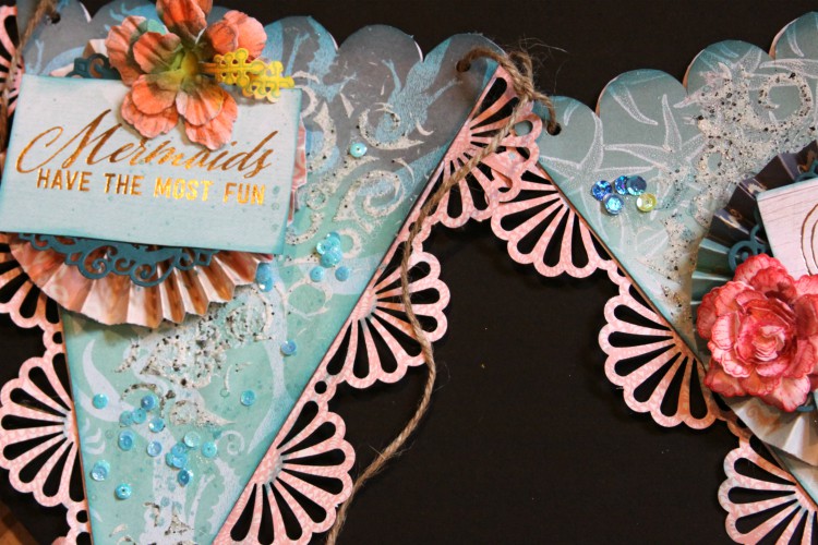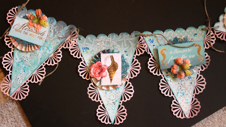 To embellish these banner I used hand made flowers, rosettes and die cut doilies. To give it a finishing touch I used some gel medium and