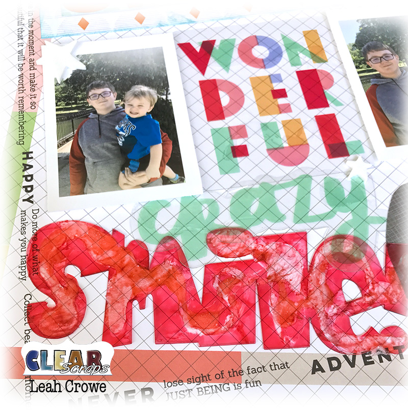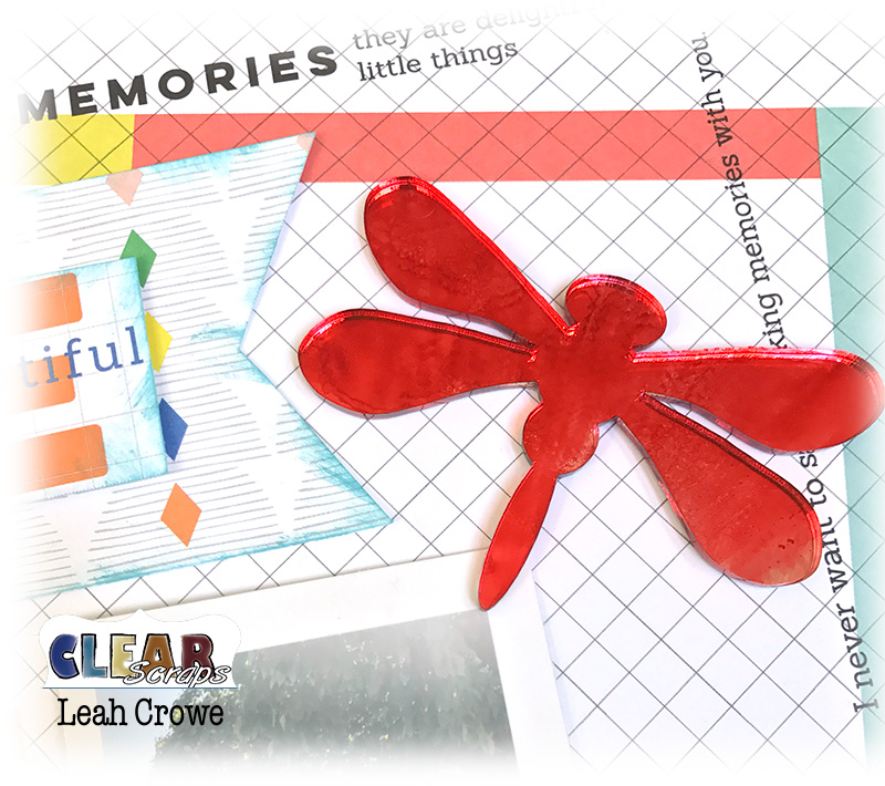 Nothing better than family and local outing to bring out a smile, especially when you're able to use the beautiful products from Clear Scraps. On this layout I have the Clear expressions acrylic title, Smile as well as the Dragonfly mirror embellishment.