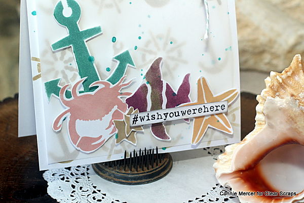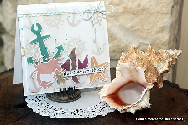 Hi, Connie here with some fun cards using stencils by Clear Scraps. Creating cards with stencils is easy to do. All you need is ink or paint to stencil in the image with. Let me show a couple of cards I created using five different 6" stencils by Clear Scraps.