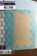 I used Stazon Ink and stencils on the acrylic pages, and Distress Oxide and stencils on the chipboard pages.