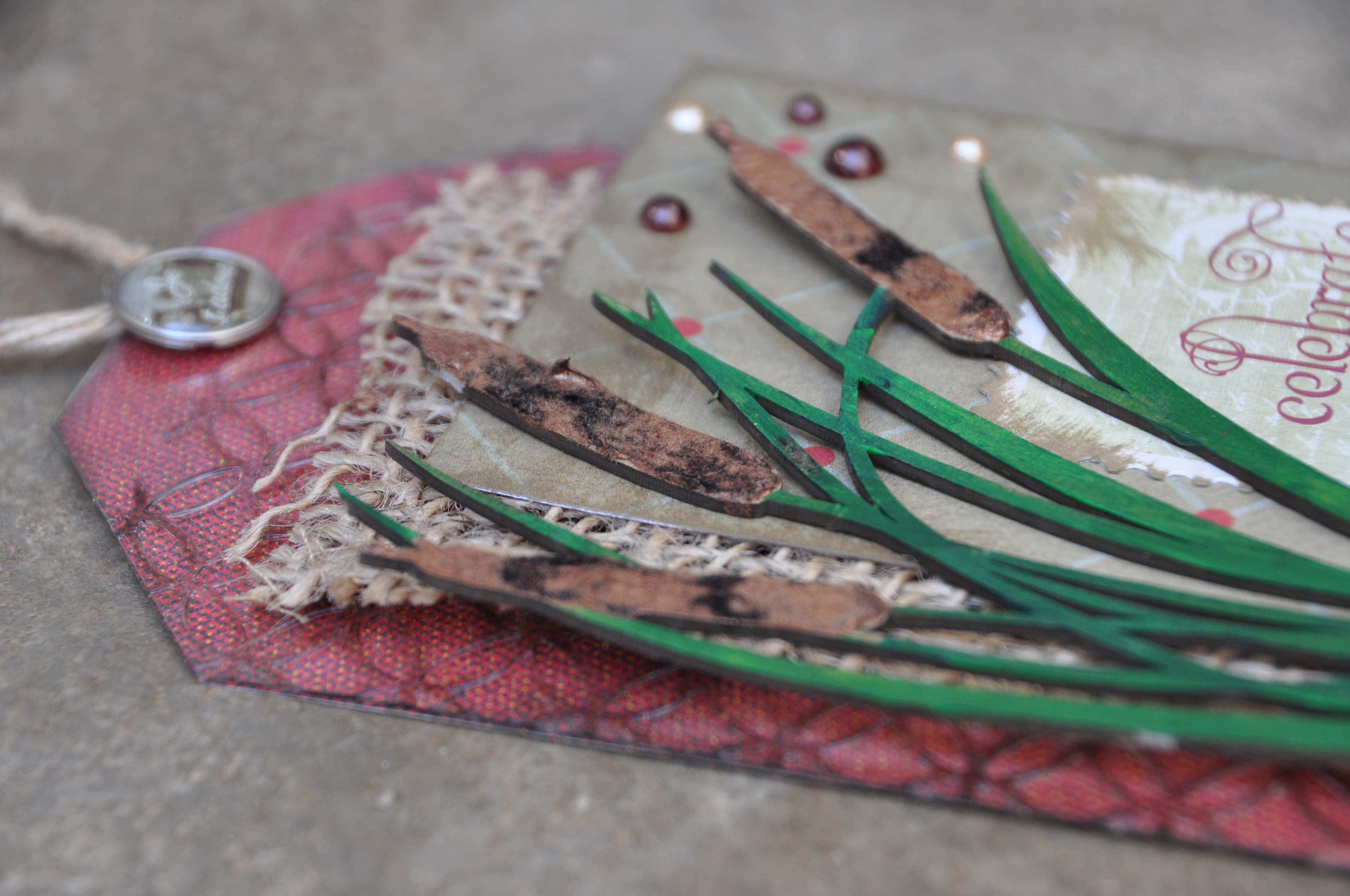 To complete the tag I painted the Cat Tails Chipboard embellishment, adding a bit of flocking to the tops of the tails to mimic real cat tails, and adhered as my final layer.