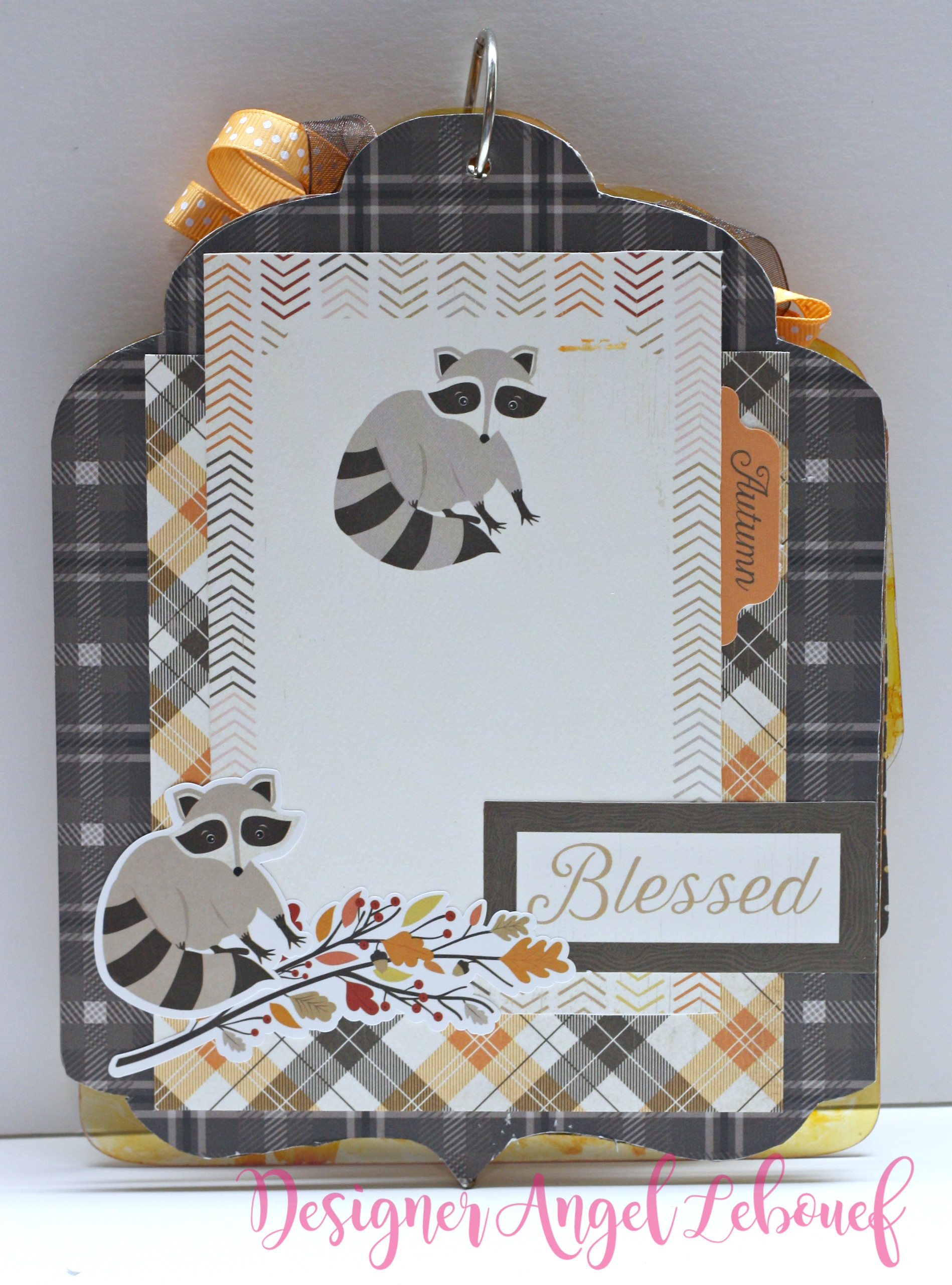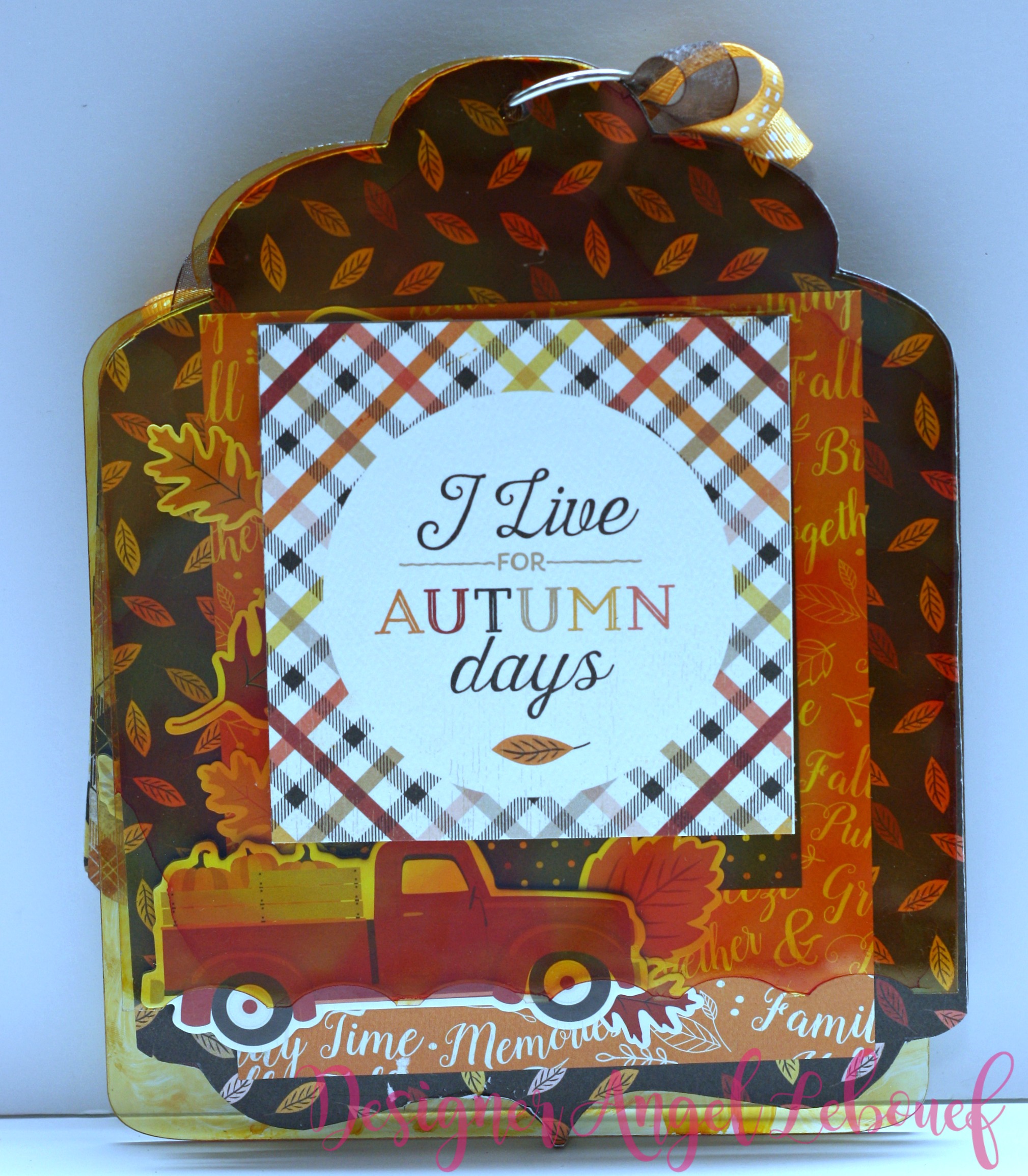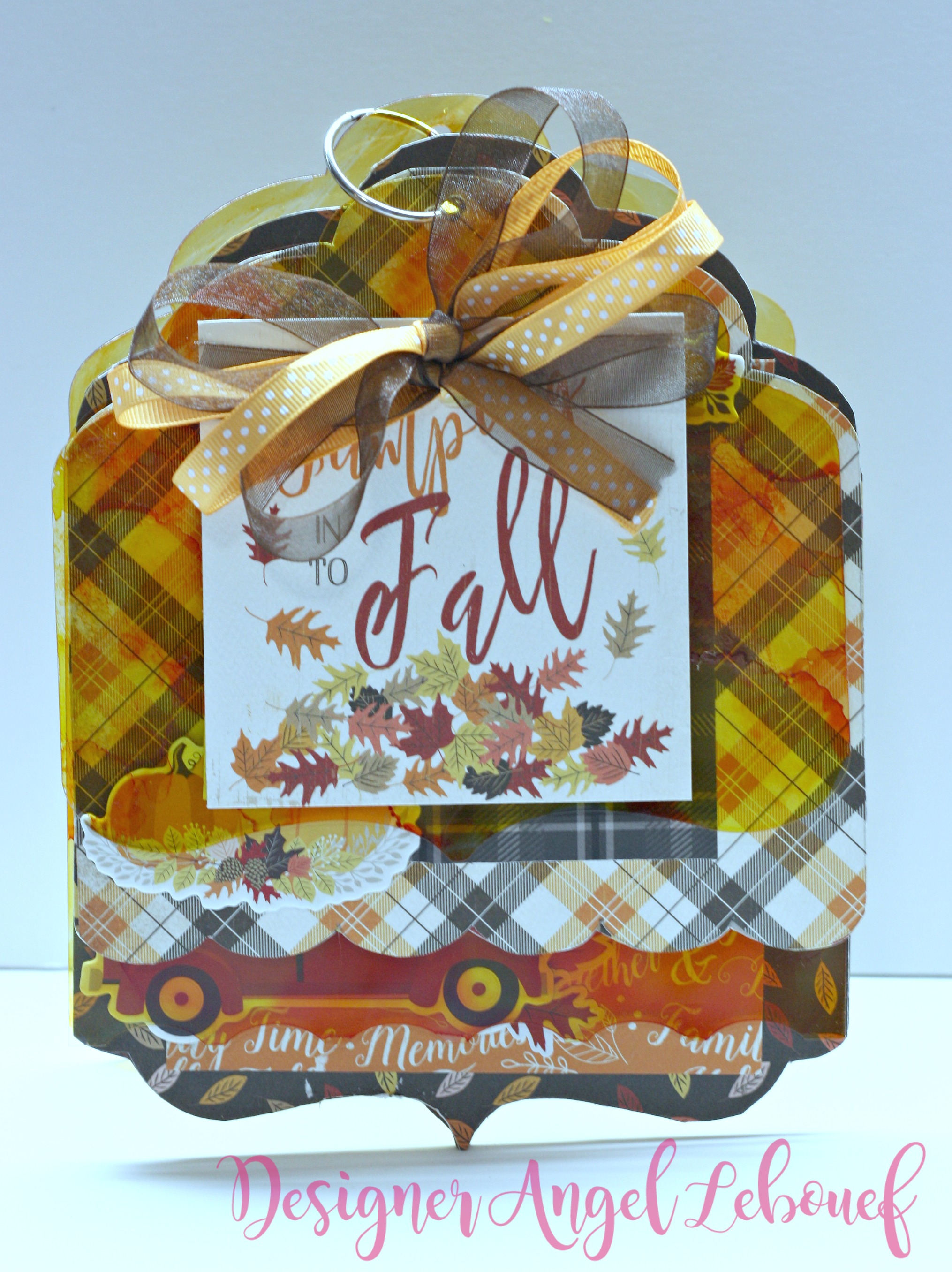 Angel here today to share a Fall Mini Album with you. I just love this time of year when the leaves start changing and so does the temperatures. I made this mini album using the mixed tag album from Clear Scraps!