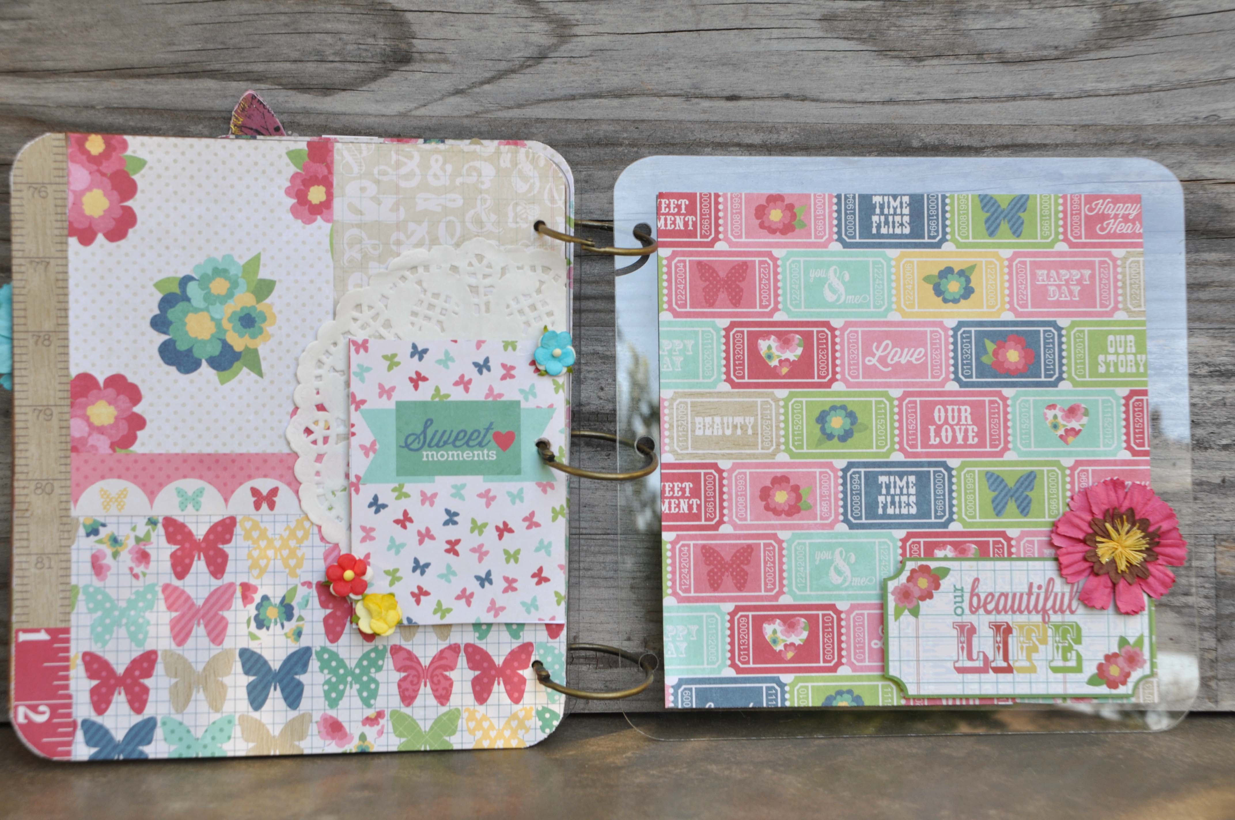 Mixable albums are a mix of acrylic and chipboard pages. They offer many opportunities for embellishment; and with double sided papers, you can do a lot with just a few sheets.