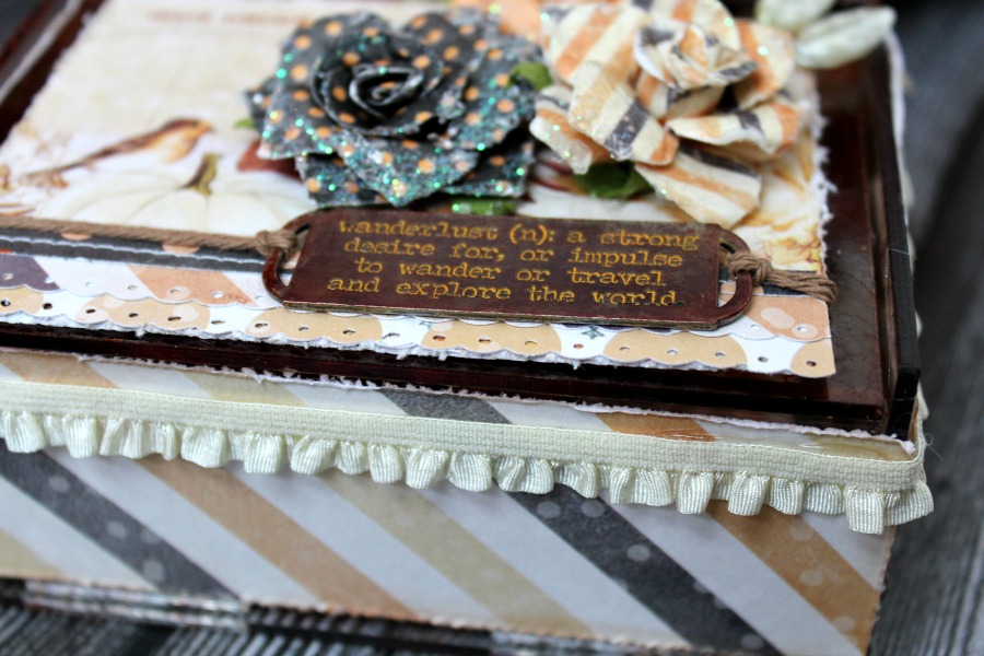 The Small Acrylic Clear Box is the perfect size for a small 3×4 mini album. I used the journaling cards from the collection and embellished to place inside my clear box! Its fun to scrap on a smaller scale and use some of your little embellishments from your stash!
