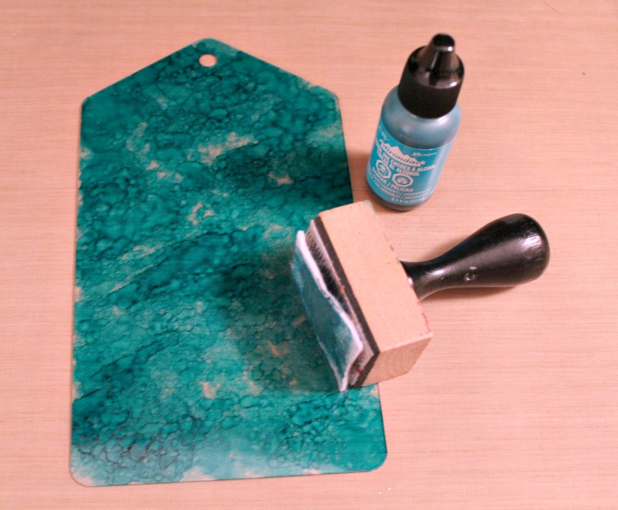 I covered my Acrylic Tag using alcohol ink in Mermaid. Using a solvent based medium is your best bet to use on all Clear Scraps acrylic as it won't run and dries quickly!