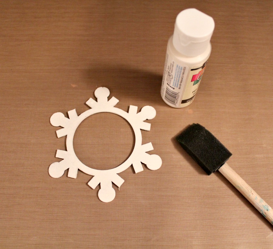 Next, I'm going to show you how I decorated my Snowflake Shaker! I applied a few coats of off-white acrylic paint to the top chipboard frame.